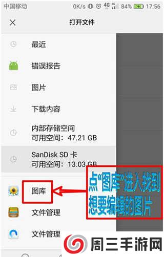 2、这时点“图库”进入要编辑的图片所在文件夹;