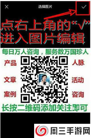 5、点击要编辑的图片,再点右上角的那个“√”,进入图片编辑页面;