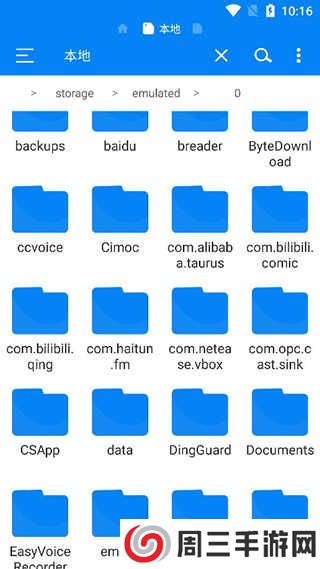 2、我们点击后来到下方界面,可以看到我们手机中所有的文件夹(这里对文件夹名称进行了涂抹),如果需要对其进行存储空间分析可以点击右上角的三个竖排点号按钮