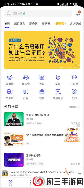2、配音秀:提供原版听力材料配音,秀出你的发音;