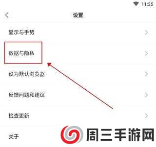 3、在“设置”窗口中,选择“数据与隐私”栏目。