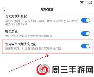6、勾选“使用网页联想查询功能”栏目右侧按钮进行开启。