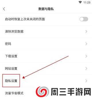 4、在“数据与隐私”窗口中,选择“隐私设置”栏目。