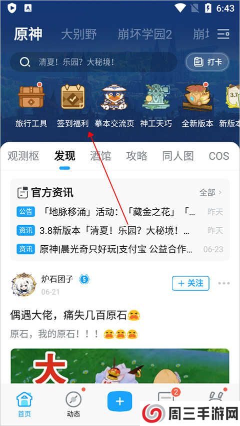 1、用户打开软件原神区app,进入页面后选择原神关注进入应用界面