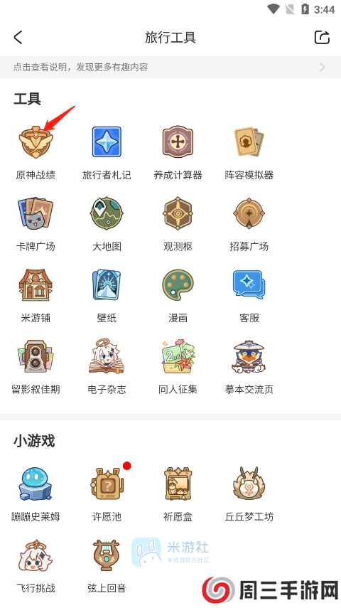 3、最后在旅行工具页面点击原神战绩,在这里面你就可以查看抽卡记录啦。
