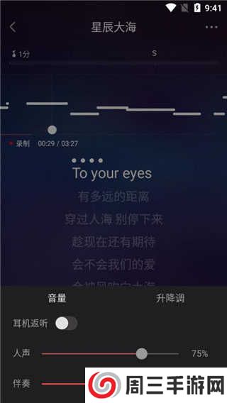 歌曲录制完成后就进入调音的重要环节了,部分歌曲会有自动修音的选项,这为你省了不少心,还可以进行单句修音哦,这只需要一键操作,小编就不多加介绍了,修音后不同步的地方可能会有两个声音重叠,试听满意后再保存。