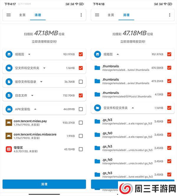 3、*清理功能方面,目前来说比较简单,会自动扫描比较常规的*文件,点击下拉可以查看详细清理的内容。