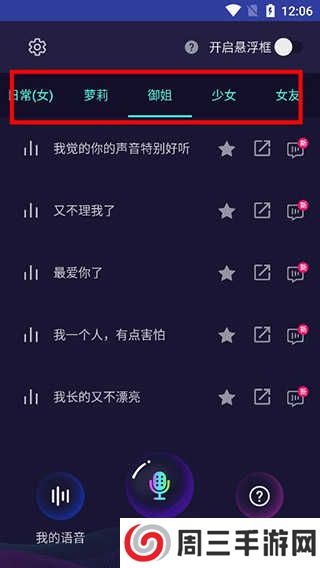 1、在本站下载安装变声器大师免费版,进入软件后提供了御姐、少女等分类的语音包;