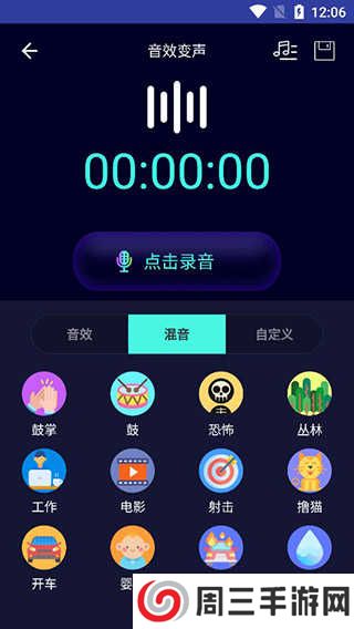 3、在录音功能中,用户可以选择音效、混音以及自定义;