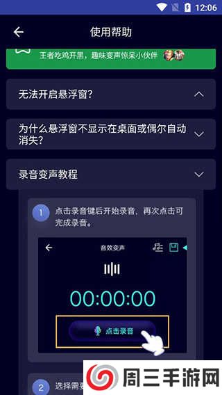 7、悬浮窗功能,让你轻松实现微信、qq等聊天软件中的变声,各种游戏中变声也是不在话下。更多好玩的功能等你来慢慢发掘。