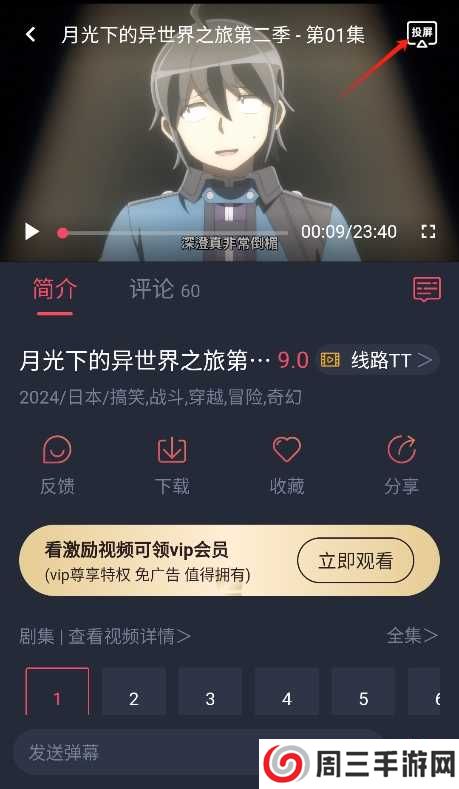 1、打开软件后,选择你想要观看的动漫,进入播放界面,点击空白处,找到投屏按钮;