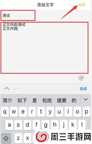在打开的编辑页面中,输入文章标题和文章正文内容,输入完成后,点击右上角“完成”