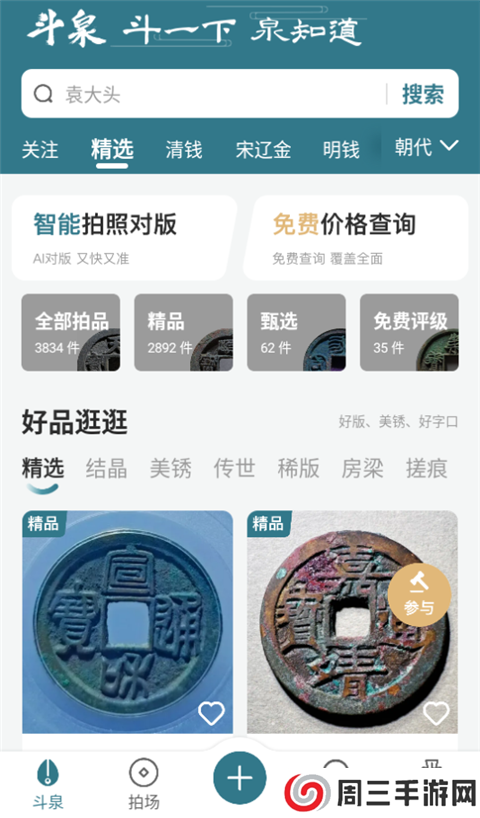 斗泉软件是一款专注于古钱币交流、学习和交易的综合平台。它不仅提供免费拍照对版功能,还涵盖了丰富的古钱币种类。此外,软件还提供了成交价格查询和社区论坛交流等功能,让古钱币爱好者能够轻松获取最新市场信息并与其他用户分享心得。感兴趣的小伙伴们,快来点击下载按钮试试吧。