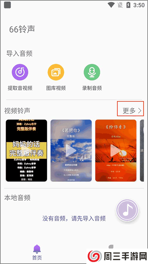 首先我们先打开app,在主页找到视频铃声,点击最右边的更多。