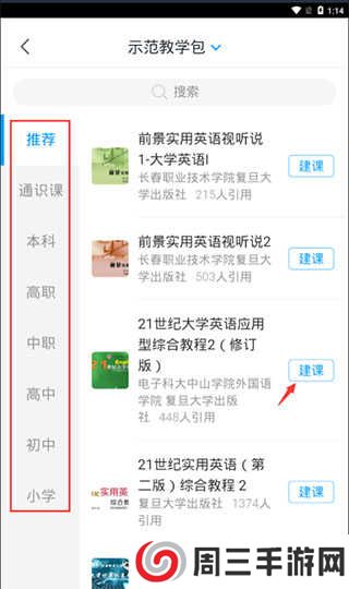 6、然后点击用示范教学包建课。