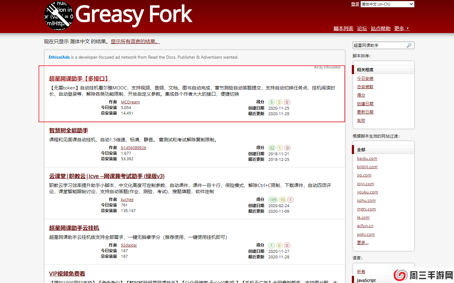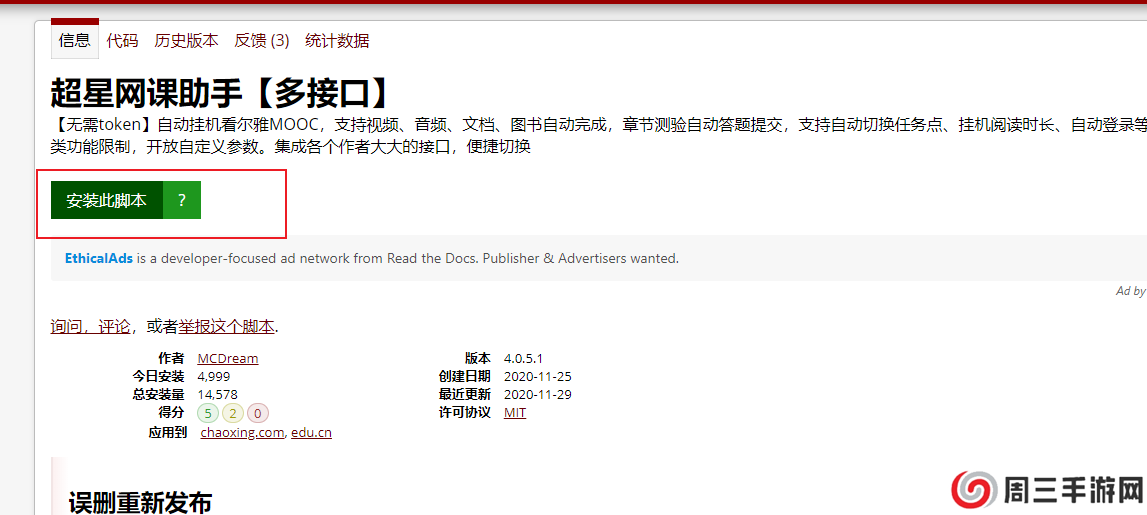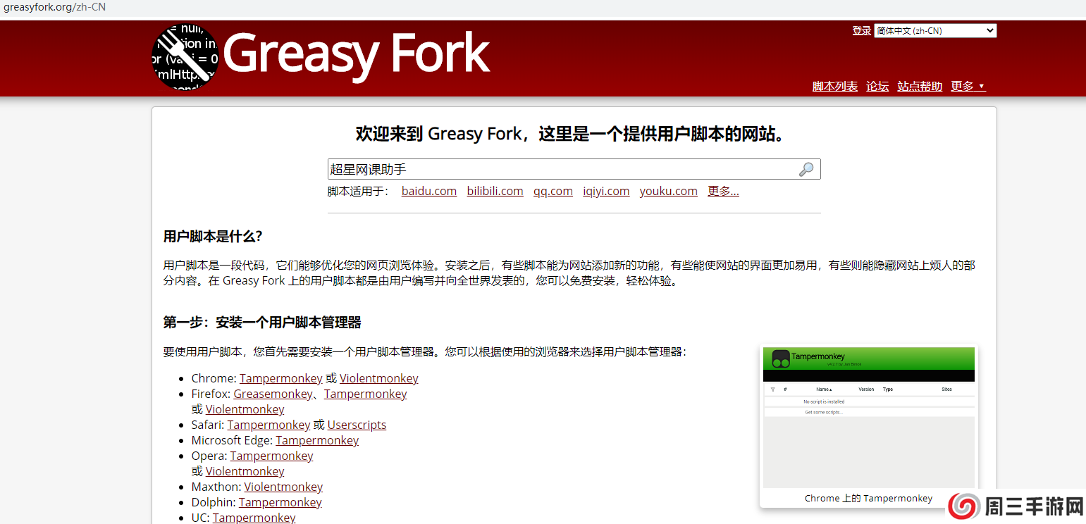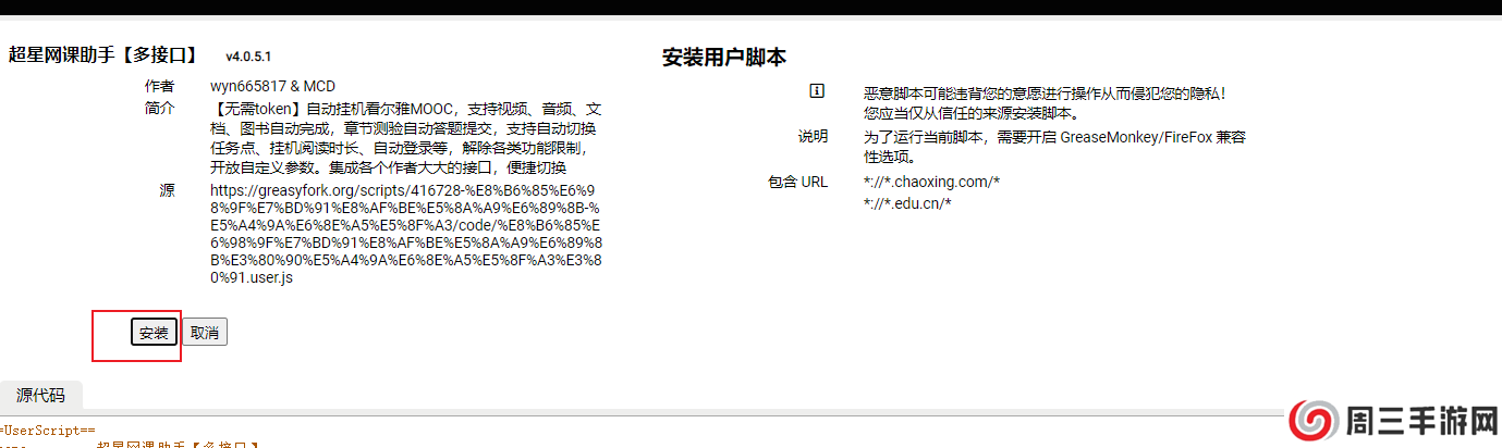 点击进去超新星网课助手,点击安装此脚本: