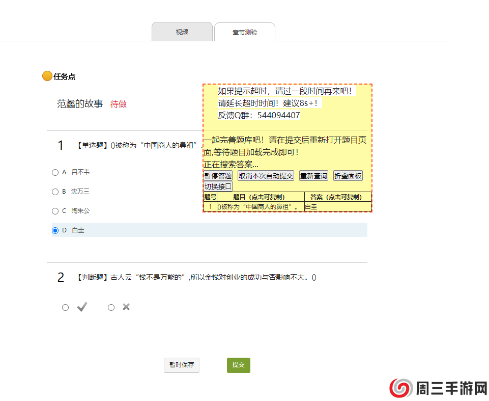 增加了自动答题功能,用户可以通过脚本自动完成学习通的在线答题。
