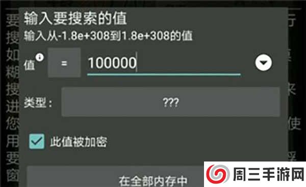 3、搜索你游戏现在的金币数量,并且勾选此值被加密;