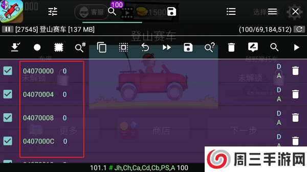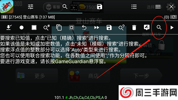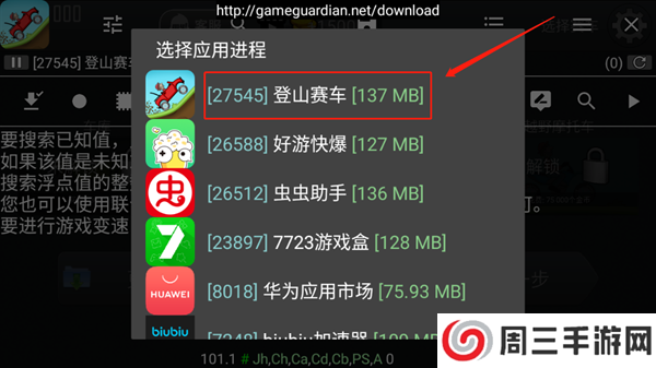 5、点击GameGuardian修改器悬浮窗,选择《登山赛车》。