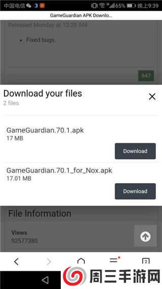 往下翻会看到紫色的按钮:Download this file点击后会跳转到下载界面,p击下载 (和GG修改器一样的步骤)