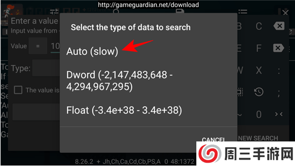 7、也可以选择Auto 让GG 修改器自己搜寻游戏内可以修改的参数。