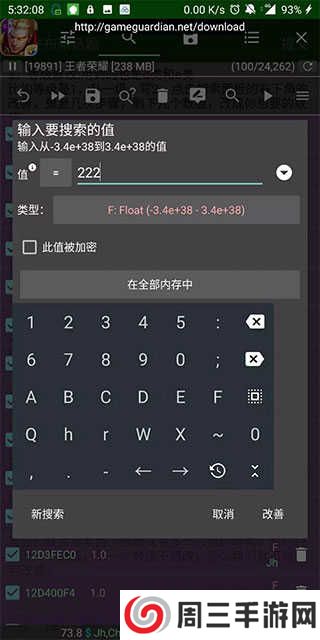 6、如果搜索出来的地址还是很多。继续回到游戏消耗金币,然后再次回到gg修改器,输入93228。搜索地址出来两个;