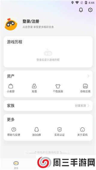3、在“我”里,你可以看到自己的基础信息、游戏历程、资产、家族和软件基础功能。