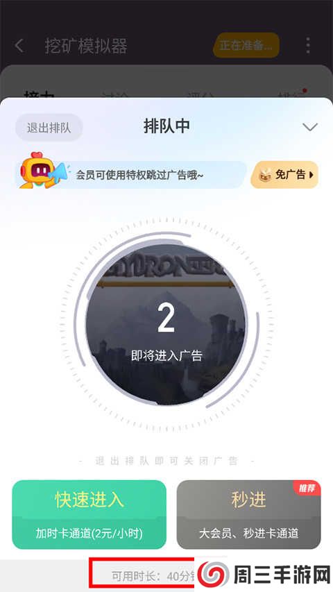菜鸡云电脑每天都会提供免费时长的,只要观看下一小段广告就可免费领取40分钟