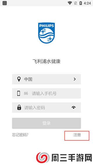 1、先从本站下载好飞利浦水健康app,下载完成之后,打开软件,新用户需要找到右下角的注册,点进去输入实名验证的手机号码,接收验证码,点击下一步,设置密码,最后返回登录界面输入刚才使用的手机号码和密码,点击登录即可进入。
