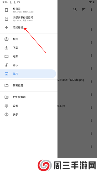 回到服务端,进入左侧菜单>FTP服务器,状态改为启动(长按图标的快捷列表里也有FTP服务器,进入也是这里)。然后进入客户端,左侧列表>刚才设置的存储位置。然后就可以像在一个空间内操作(复制、剪切)了。