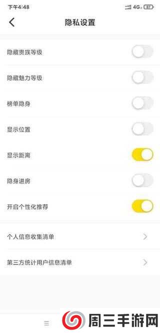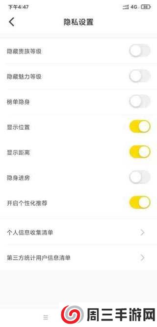 3、在隐私设置中找到显示位置