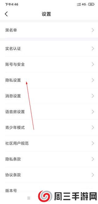 2、在设置界面找到隐私设置