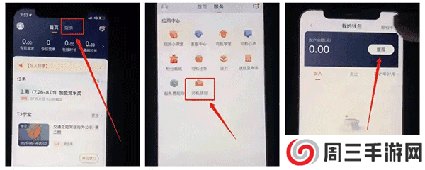 1、打开T3出租车司机端,进入主页后,点击页面上方的“服务”功能;