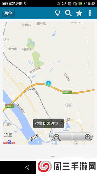 6、停止模拟:再次点击定位的小圆点,虚拟定位结束