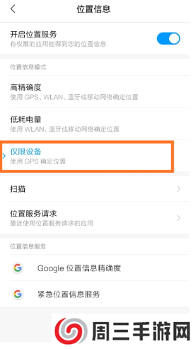 Android 9及以下,如果手机设置里的位置服务已经开启,请确认已设置为"仅限设备"模式。