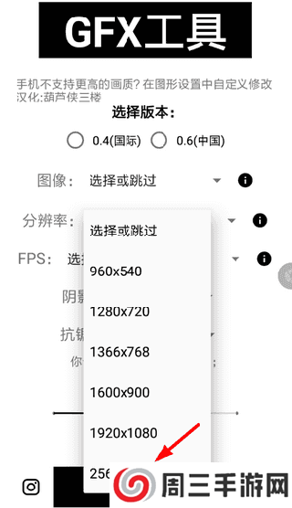 3、GFX Tool除了可以调画质,还可以调分辨率,在“分辨率”一项你可以选择游戏分辨率,从最低的“960×540”到最高2K分辨率都可以选择。