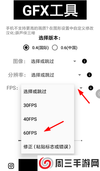 4、在帧数方面,GFX Tool也可以让你轻松得到60祯的上限,只需要在“FPS”中选择“60”即可。除此以外,GFX Tool抗锯齿的开关,可谓是面面俱到。