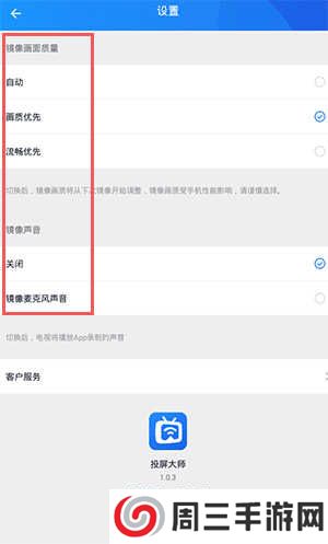 5、点开我的,可以对镜像画面质量、声音等进行设置。