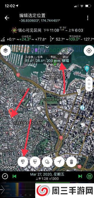 1、红点是选择好的机位,左下角的相机图标就是“选择拍摄点”。中间选择你的镜头焦距,我当时手里只有一只200mm。