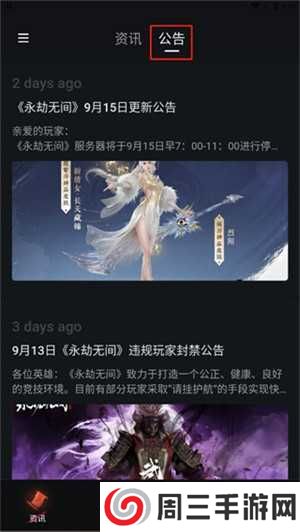 3、用户还可以点击公告来查看永劫无间游戏最新状况;