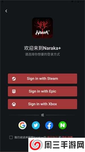 3、也可以选择谷歌、推特等平台账号进行登录,勾选同意协议之后进行登录