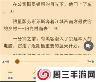 3.进入小说后,用户可以自己选择目录、亮度、夜间和设置等参数