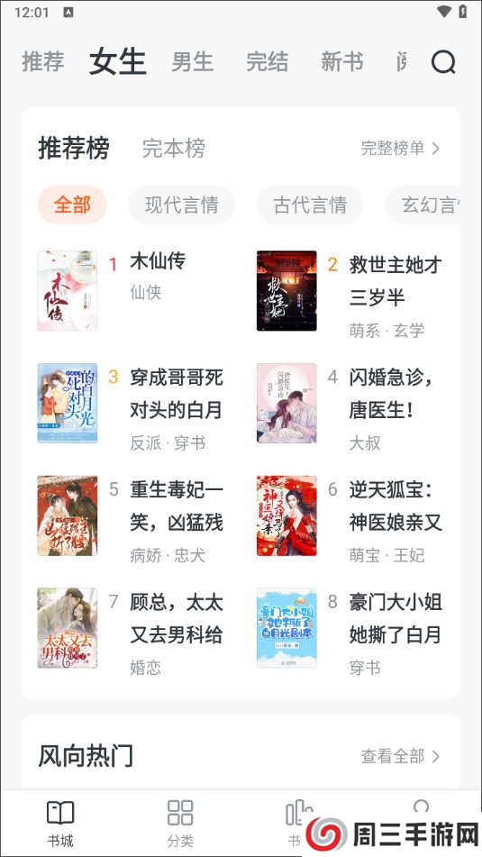 2.在【书城】这一界面可以随意切换,比如推荐榜或者是完结的