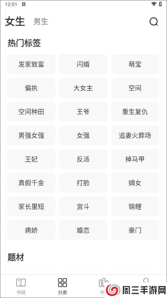 4.在【分类】这一界面,可以清楚的选择你的小说标签或题材