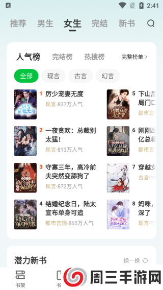 推荐、男生、女生、出版四大版块,**度分类、热门排行榜单,小编为你精心推荐.在这里,能读到的不止是免费.