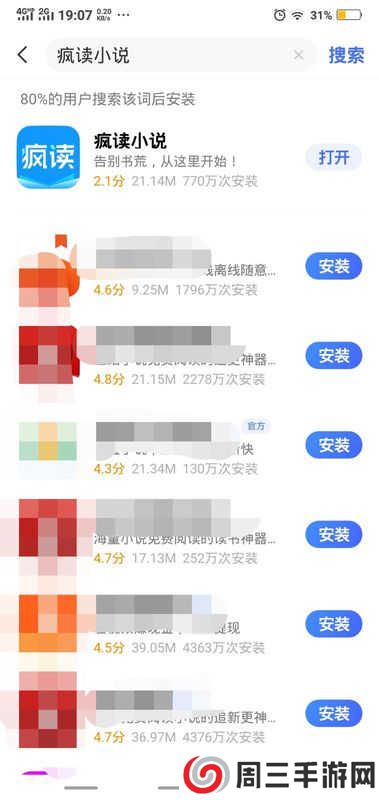 1.在手机应用商城下载并安装疯读小说APP。