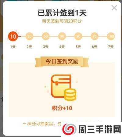 7天签到分别可以得到102050303030100的积分奖励,一周坚持签到可以总共可以获得270积分,也就是9次抽奖机会。