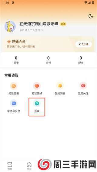 切换到小说菜单页面点击【设置】。