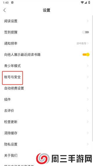3.接着来到设置的页面,在这里我们点击【账号与安全】;
