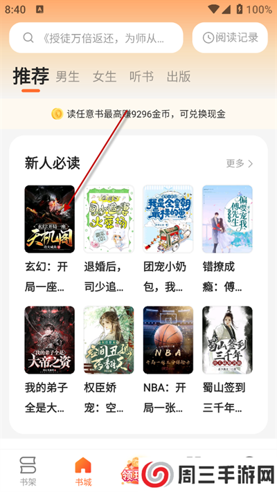 打开盛读小说APP点击任意一部小说。